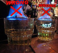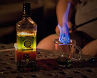It can't be said enough-- burning absinthe is not a good idea. Probably 151 or everclear in these clips, but any booze over 100 proof should burn freely, so don't be like these guys. Thanks to SP for the clips. Here's two more: 1, 2